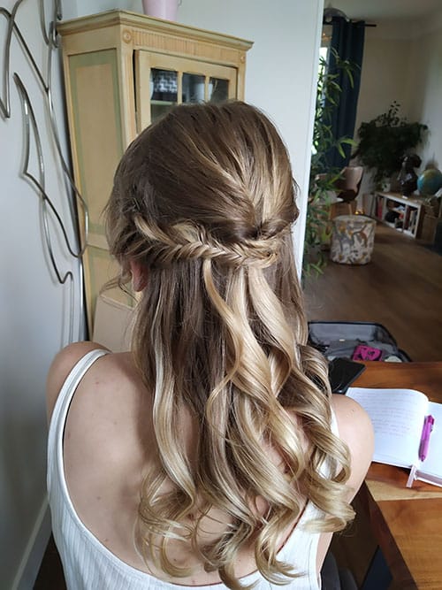 Afin de vous satisfaire, je vous propose un premier rendez-vous téléphonique gratuit pour échanger sur vos envies coiffure et votre mariage. Puis un essai de 2h avec réalisation de deux ou trois coiffures si besoin afin de choisir au mieux la coiffure du grand jour. Ce qui permettra le jour J de se laisser porter et d’apprécier pleinement les préparatifs de cette journée exceptionnelle.